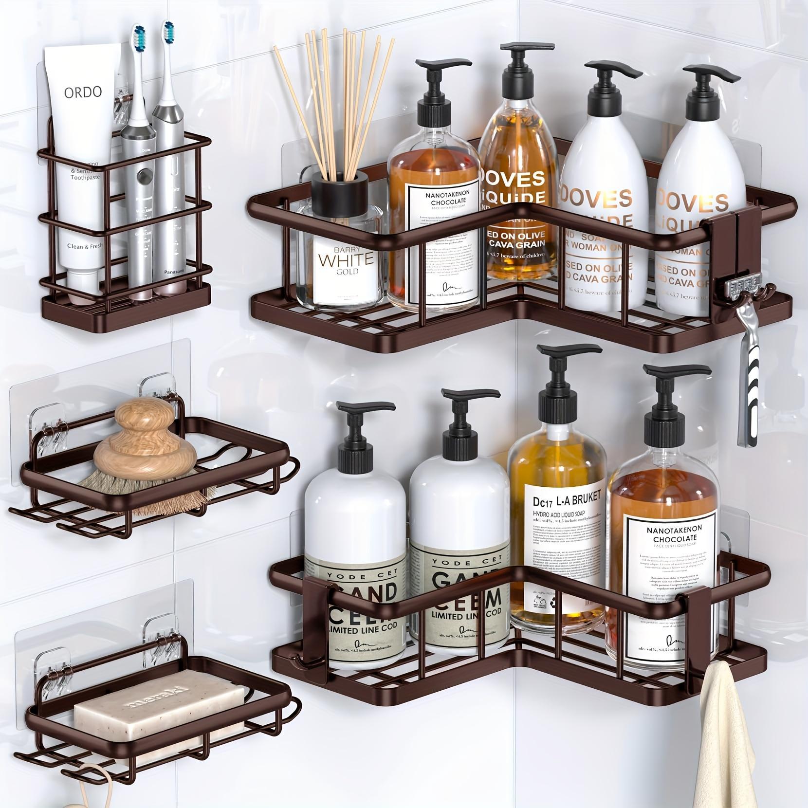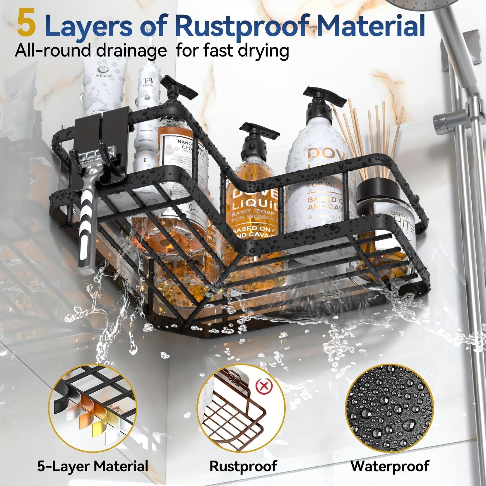 Corner Shower Storage Rack Rust-proof Punch-Free Shower Storage Rack With Soap Holder And Removable Hooks